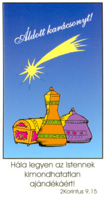 Felirata: Áldott karácsonyt! Hála legyen az Istennek kimondhatatlan ajándékáért!
