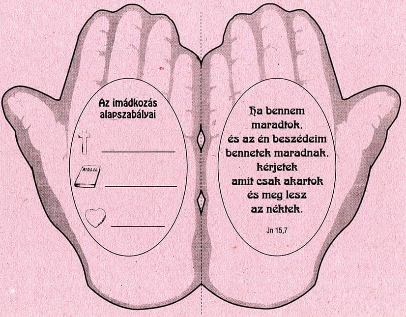 Kivágós, színezős modell, mely segít a gyerekeknek az imádkozásban.