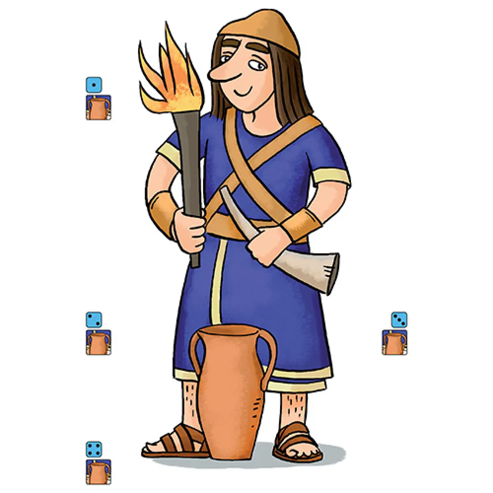 - Gedeon kürttel, cserépfazékkal és fáklyával