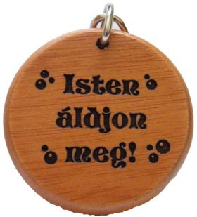 Kulcstartó, fa, kerek (Isten áldjon)