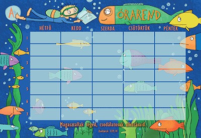 Színes, képes igés órarendek. Hatféle grafikával és igével. Kétoldalas, A-B hét, napi 7 óra.