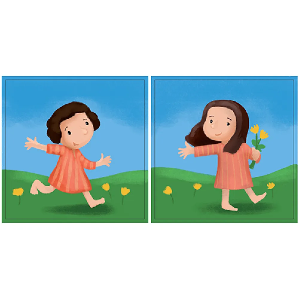 A 25 kártyapáron személyek (5 pár), állatok (5 pár), növények (5 pár) és tárgyak (10 pár) szerepelnek. A kártyapárok nem egyformák, mégis könnyen párosíthatók. A képek segítenek a játékosoknak megismerni és megjegyezni azokat a tárgyakat, fogalmakat, amikkel a bibliai történetek során találkoznak, de a mai gyerekek számára már kevésbé ismertek, mint például: legeltet, vályú, parittya, kemence. Többféle párosító játék mellett a klasszikus memóriajáték szabálya szerint játszhatnak a Sátor-ovival kicsik és nagyok.